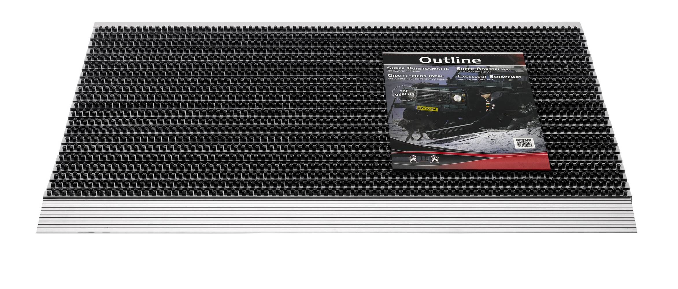 Pasklare borstelmat Outline in de kleur antraciet heeft een afmeting van 50 x 80 cm. Outline is een borstelmat met een aluminium profiel en fijne borstelharen die zelfs hardnekkig vuil zeer effectief van de zolen schraapt. Deurmat Outline heeft een dikte van 22 mm en is verkrijgbaar in diverse kleuren.